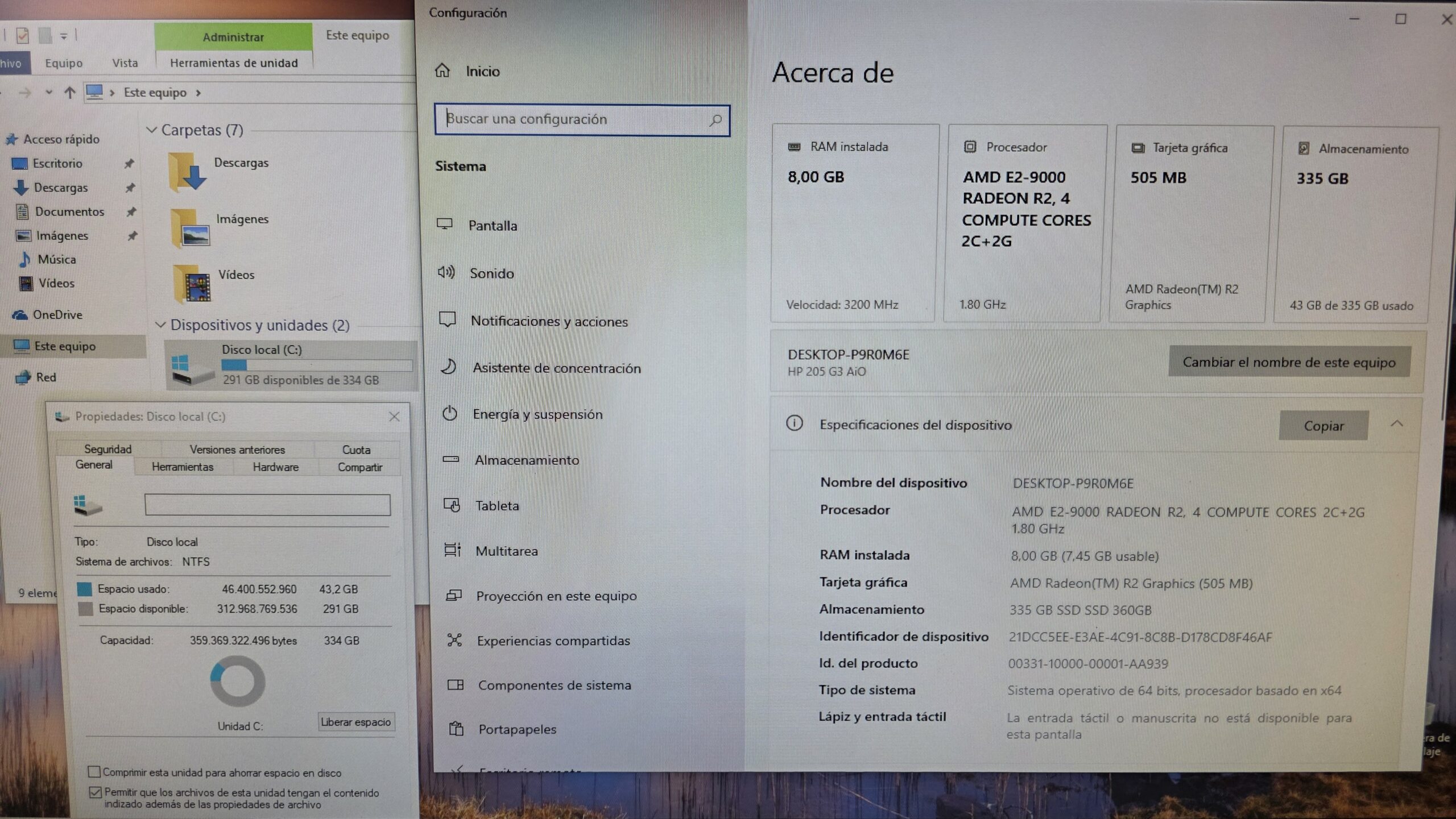 Procesador: AMD E2-9000 Radeon R2 Doble núcleo SSD: 350Gb RAM: 8Gb Pantalla LED de 19.5″ HD Webcam integrada con micrófono dual Wi‑Fi Unidad óptica DVD±RW Windows 10 Pro